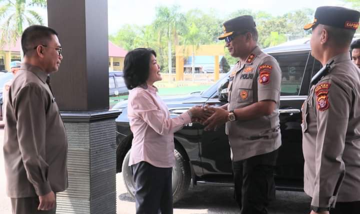 Kapolda Kalteng disambut langsung oleh Kapolres Pulang Pisau AKBP Mada Ramadita, S.I.K., didampingi Bupati Pulang Pisau Pudji Rustaty Narang, Sekda Pulang Pisau, Wakapolres Pulang Pisau Kompol Edia Sutaata, S.H., M.H., dan Pejabat Utama di depan Mapolres Pulang Pisau.