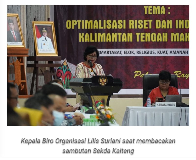 PALANGKA RAYA, Jurnalborneo.co.id – Kepala Biro Organisasi, Lilis Suriani, mewakili Sekretaris Daerah (Sekda) Kalteng membuka Rapat koordinasi (Rakor) penelitian dan pengembangan (Litbang) dan Ilmu Pengetahuan dan Teknologi (IPTEK) Provinsi Kalteng tahun 2022 di Aula Serbaguna Bappedalitbang, Kamis (6/10/2022).