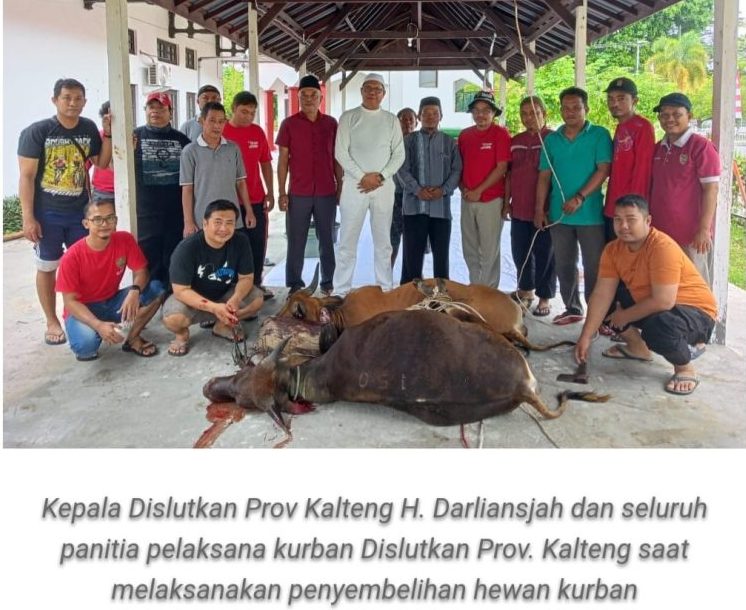 Palangka Raya, jurnalborneo.co.id — Dalam rangka merayakan Idul Adha 1444 H, Majelis Talim Assamkiyah Dinas Kelautan dan Perikanan (Dislutkan) Provinsi Kalimantan Tengah melaksanakan penyembelihan hewan kurban sebanyak dua ekor sapi dan empat ekor kambing.