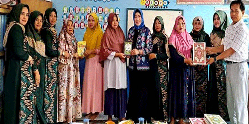 Nety Herawatai dalam kunjungan tersebut sekaligus menyerahkan bantuan buku Iqro Al Quran dan buku kunci ibadah kepada pengurus TK Kamboja.