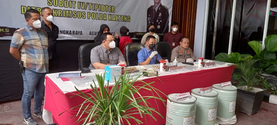 PALANGKA RAYA, JurnalBorneo.co.id – Kepolisian Daerah Kalimantan Tengah (Polda Kalteng) berhasil mengungkap tindak pidana peredaran bahan kimia berbahaya jenis Sodium Cyanide atau Sianida dari satu rumah yang terletak di jalan Temenggung Tilung Kelurahan Menteng Palangka Raya, Senin (22/8/2022).