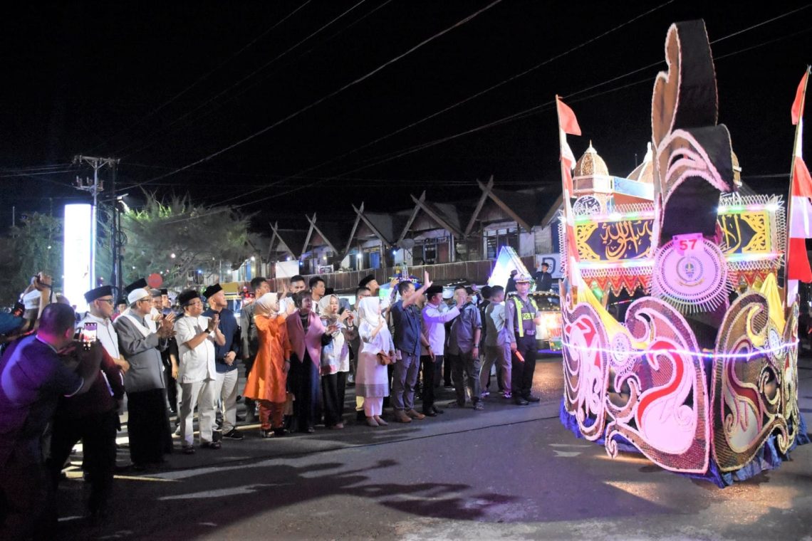 Kegiatan pun berlangsung dengan meriah, dimana tampak puluhan mobil dan tosa yang dihiasi dengan lampu warna warni dan ornamen khas Ramadan melintasi masyarakat yang menonton di sepanjang rute pawai tersebut.