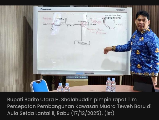 Bupati Barito Utara, H. Shalahuddin, memimpin langsung rapat strategis Tim Percepatan Pembangunan Kawasan Muara Teweh Baru, Rabu, 17 Desember 2025.