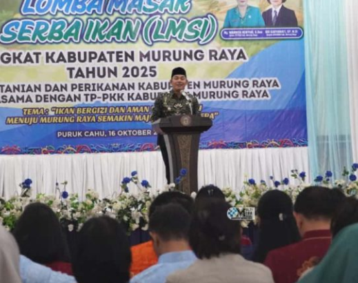PURUK CAHU, JurnalBorneo.co.id – Pemerintah Kabupaten Murung Raya (Mura) melalui Dinas Pertanian dan Perikanan (Distanik) menggelar Lomba Masak Serba Ikan tingkat kabupaten, Kamis (16/10/2025), bertempat di GPU Tira Tangka Balang. Kegiatan ini dibuka secara resmi oleh Wakil Bupati Murung Raya, Rahmanto Muhidin, mewakili Bupati Heriyus.