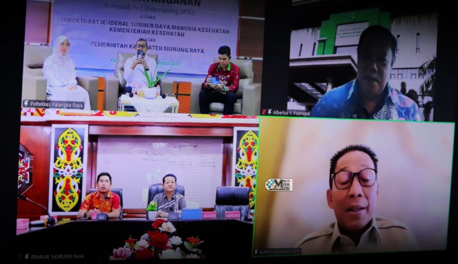 PURUK CAHU, JurnalBorneo.co.id – Pemerintah Kabupaten (Pemkab) Murung Raya menandatangani Memorandum of Understanding (MoU) dengan Direktorat Jenderal Sumber Daya Manusia Kesehatan, Kementerian Kesehatan Republik Indonesia, Kamis (4/9/2025). Penandatanganan dilakukan secara virtual melalui Zoom, dihadiri langsung oleh Bupati Murung Raya, Heriyus, yang menandatangani dokumen secara online.