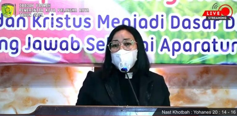 Sebagaimana disampaikan oleh Pendeta Freshia Aprilyn Ross, M.Th., yang melayani Penyampaian Firman Tuhan untuk Perayaan Paskah Pemerintah Kota Palangka Raya bahwa di masa pandemi Covid-19 yang sedang melanda dunia saat ini, dalam melakukan pelayanan kita harus tetap mengikuti protokol kesehatan.