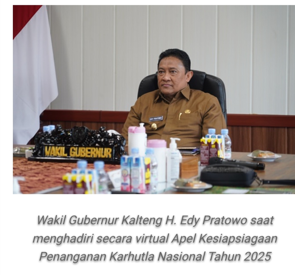 Wakil Gubernur Kalimantan Tengah H. Edy Pratowo bersama-sama dengan Unsur Forkopimda menghadiri secara virtual Apel Kesiapsiagaan Penanganan Karhutla Nasional Tahun 2025 dari Ruang Rapat Wakil Gubernur Kalteng, Selasa (29/04/2025).