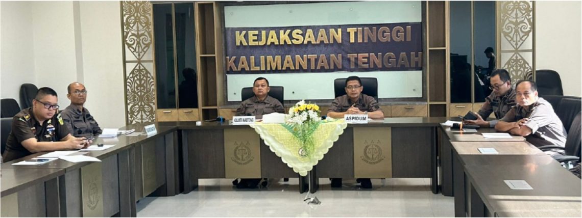 Ekspos penghentian penuntutan dilakukan secara virtual. Ekspos dihadiri Jaksa Agung Muda Tindak Pidana Umum Prof. Dr. Asep Nana Mulyana, Kajati Kalteng, Dr. Undang Mugopal, Aspidum, Suyanto dan Kajari Barut Guntur Triyono dan Kasi Oharda, Dwinanto Agung Wibowo dan Jaksa Fungsional Kejati Kalteng, Wagiman. (fer)