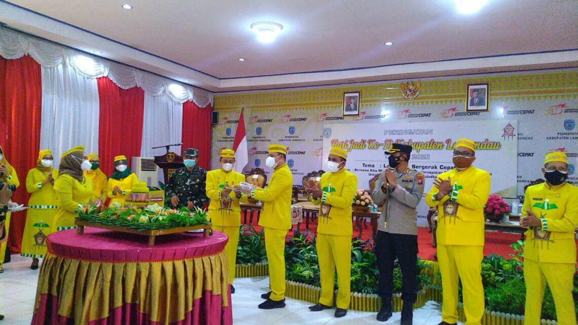 Bupati Lamandau H Hendra Lesmana dalam sambutannya mengatakan Pada peringatan hari jadi ke-19 Kabupaten Lamandau tahun ini mengambil tema “Lamandau Bergerak Cepat” dengan sub tema “Bersama Kita Lawan Covid-19 dan Percepatan Penanganan Kesehatan untuk Pemulihan Ekonomi Mewujudkan Lamanda Juara”.