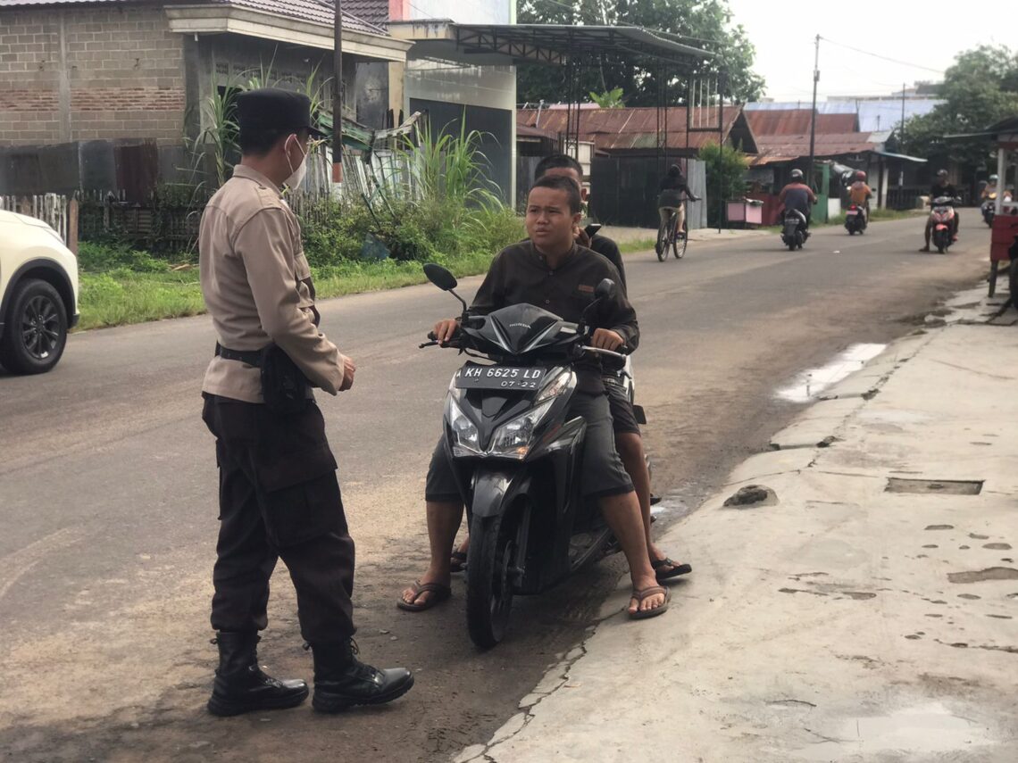 KUALA PEMBUANG, JurnalBorneo.co.id — Anggota Bag SDM Polres Seruyan berikan teguran kepada warga yang mengendarai sepeda motor tanpa gunakan helm dan masker.