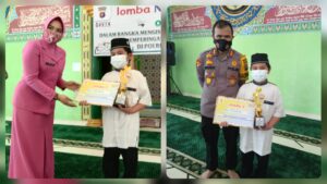 Kapolsek Tewah Iptu Nanang Maulidi, S.H., mengucapkan terima kasih atas prestasi yang ditorehkan Rahma Maulida pemenang juara 1 Ngaji dan Akil Pebri, juara 2 Adzan.