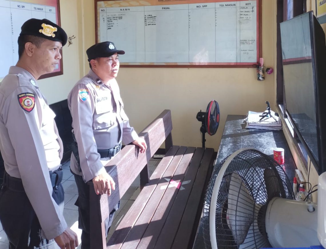 Untuk memastikan hal tersebut bisa berjalan dengan baik, Senin (26/06/2023), Anggota Piket Jaga tahanan melakukan cek ruang tahanan dan kontrol petugas jaga serta memeriksa CCTV yang terpasang di sudut-sudut ruang tahanan.