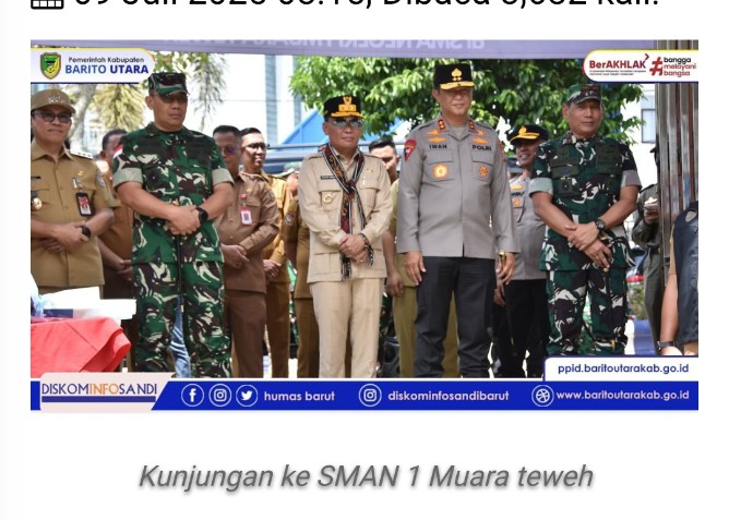 Gubernur Kalimantan Tengah, H. Agustiar Sabran melakukan kunjungan kerja ke SMA Negeri 1 Muara Teweh yang bertepatan dengan Masa Pengenalan Sekolah (MPLS), Selasa (8/7/2025).