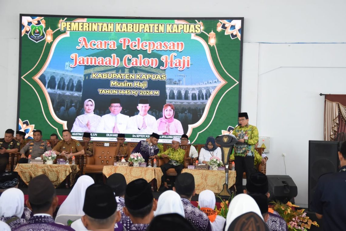 Sebanyak 317 jamaah calon haji dari Kabupaten Kapuas tahun 1445 Hijriah atau tahun 2024 yang terdiri dari tiga kloter yaitu kloter 3, 5 dan 6 resmi dilepas oleh Penjabat (Pj) Bupati Kapuas Erlin Hardi dengan disaksikan juga oleh unsur Forkopimda Kapuas, Sekretaris Daerah Kabupaten Kapuas Septedy dan sejumlah tokoh agama, di Hall Rumah Jabatan Bupati Kapuas, Senin (13/5/2024).