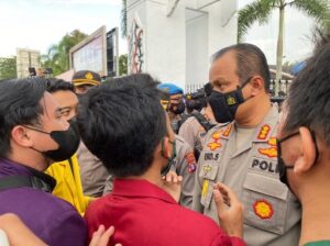 PALANGKA RAYA, JurnalBorneo.co.id – Kepolisian Daerah Kalimantan Tengah (Polda Kalteng) melakukan pengamanan aksi unjuk rasa dari berbagai elemen mahasiswa yang tergabung dalam kelompok Cipayung Plus Palangka Raya di depan Kantor Dewan Perwakilan Rakyat Daerah (DPRD) Kalteng, Jalan S.Parman Kota Palangka Raya, Senin (11/4/2022) pagi.