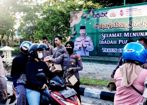 Ada 300 paket takjil atau kudapan yang diberikan oleh para personel dari Itwasda Polda Kalteng untuk masyarakat dan pengendara motor.