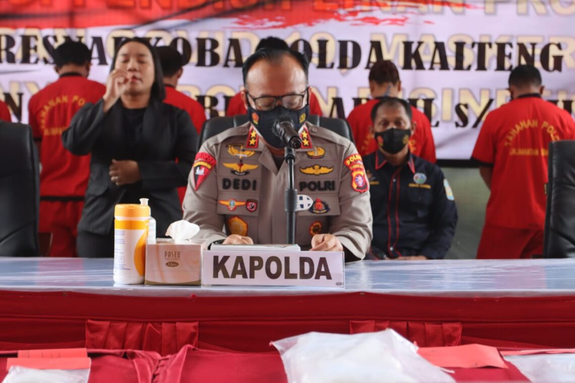 (FOTO UTAMA : Kapolda Kalteng Irjen Pol. Dr. Dedi Prasetyo, M.Hum., M.Si., M.M., dan Dirresnarkoba Kombes Pol. Nono Wardoyo, S.I.K., M.H. (duduk,kemeja hitam)