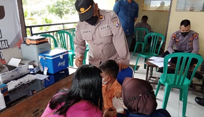 PULANG PISAU, JurnalBorneo.co.id – Jajaran Kepolisian Resort Polres Pulang Pisau, Sektor Kahayan Hilir, Polsub Sektor Mintin, membuka gerai vaksinasi Covid-19 untuk orang dewasa dan anak-anak. Kegiatan ini diselenggarakan di Pospol Mintin, tempat penyeberangan feri yang ada di Desa Mintin, Jumat (4/2/ 2022).