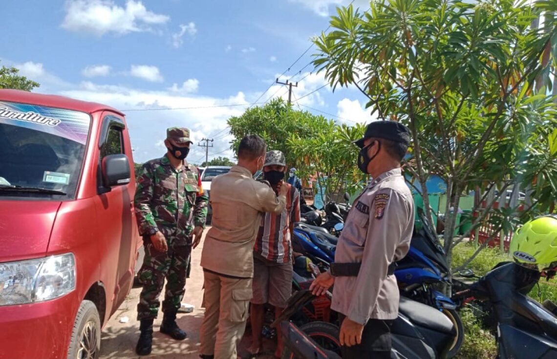 Di lokasi tersebut Tim Yustisi membagi-bagikan masker serta memberikan imbauan tentang Prokes kepada warga yang tidak memakai maker serta harus meningkatkan disiplin guna mencegah penyebaran Covid-19 semakin merajalela.