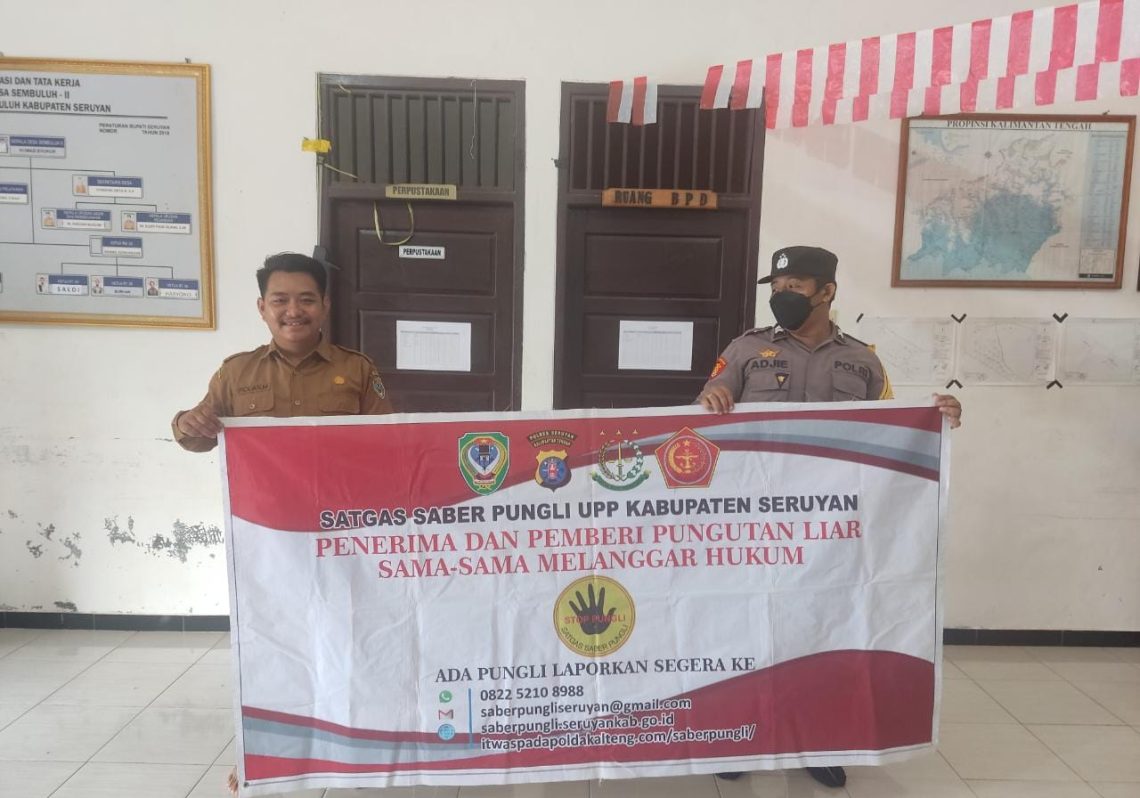 Dalam hal ini Polsek Danau Sembuluh Polres Seruyan Polda Kalteng , serta Mensosialisasikan Peraturan Presiden nomor 87 tahun 2016 tentang Satuan tugas sapu bersih pungutan liar.
