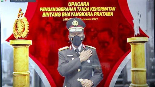 Upacara penerimaan tanda kehormatan tersebut dipimpin oleh Kapolri Jenderal Polisi Drs. Listyo Sigit Prabowo, M.Si. ,selaku Inspektur Upacara bertempat di Gedung Rupatama Mabes Polri dan tersambung secara virtual di ruang kerja Kapolda Kalteng, Kamis (30/12/21) sore.