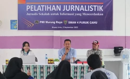 PURUK CAHU, Jurnalborneo.co.id — Persatuan Wartawan Indonesia (PWI) Kabupaten Murung Raya, memberikan pelatihan jurnalistik kepada puluhan siswa-siswi SMAN 4 Puruk Cahu yang berada di Desa Muara Untu, Kecamatan Murung, Jumat (2/8/2022).