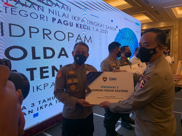 Penghargaan yang diterima tersebut yakni, peringkat kedua capaian nilai Indikator Kinerja Pelaksana Anggaran (IKPA) tingkat Satuan kerja (Satker) Polri kategori Pagu kecil T.A. 2021.