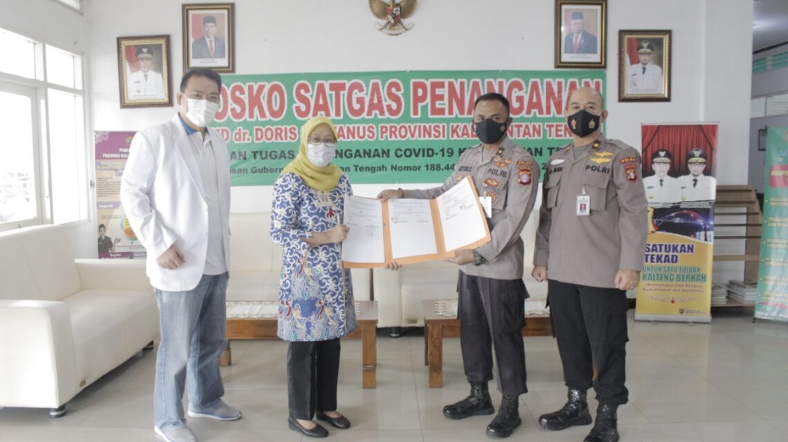 Kerjasama diteken dalam rangka pelayanan Plasma Konvalesen dari dan untuk anggota Polri yang dilaksanakan di RSUD dr. Doris Sylvanus Kota Palangka Raya, Jumat (30/4/2021) pukul 09.00 WIB.
