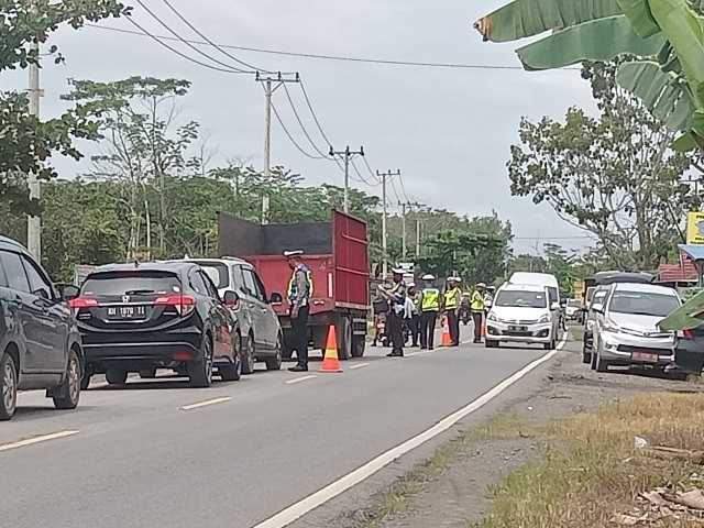 PULANG PISAU, JurnalBorneo.co.id Gabungan Satlantas Polres bersama Samsat menggelar razia kendaraan baik roda dua (R2) dan empat (R4) dengan mengambil lokasi di pos lantas Mentaren 1 Kahayan Hilir, Kabupaten Pulang Pisau, Kalimantan Tengah (Kalteng), Selasa (22/3/2022).