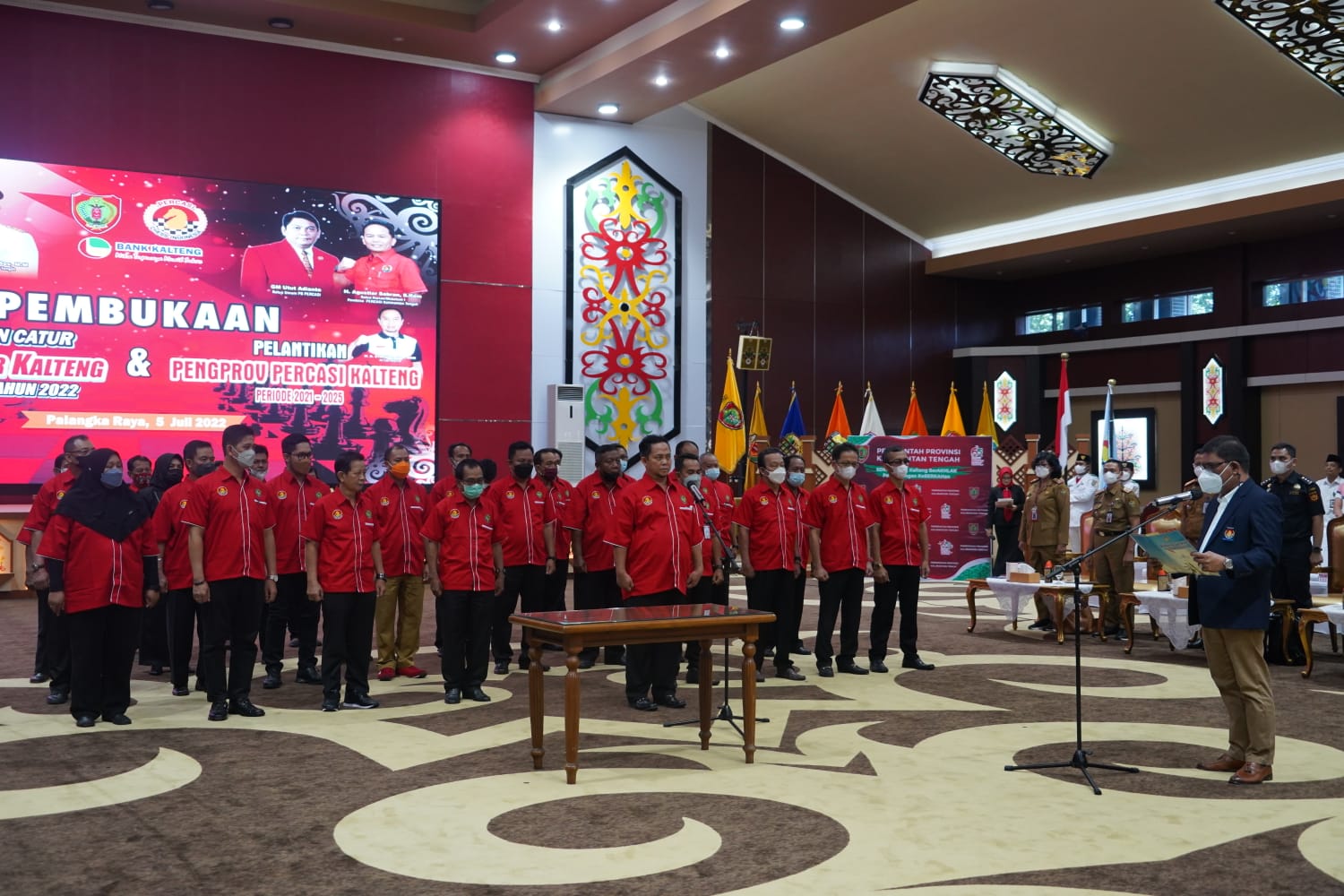 Pembukaan Open Turnamen Catur Piala Gubernur Kalteng Tingkat Nasional dirangkai dengan Pelantikan Pengurus Provinsi (Pengprov) Persatuan Catur Seluruh Indonesia (Percasi) Kalteng masa bakti 2021-2025 oleh Wakil Ketua Umum Percasi Bidang Organisasi Laksamana TNI Abdul Rival, bertempat di Aula Jayang Tingang, Kantor Gubernur Kalteng, Selasa (5/7/2022).