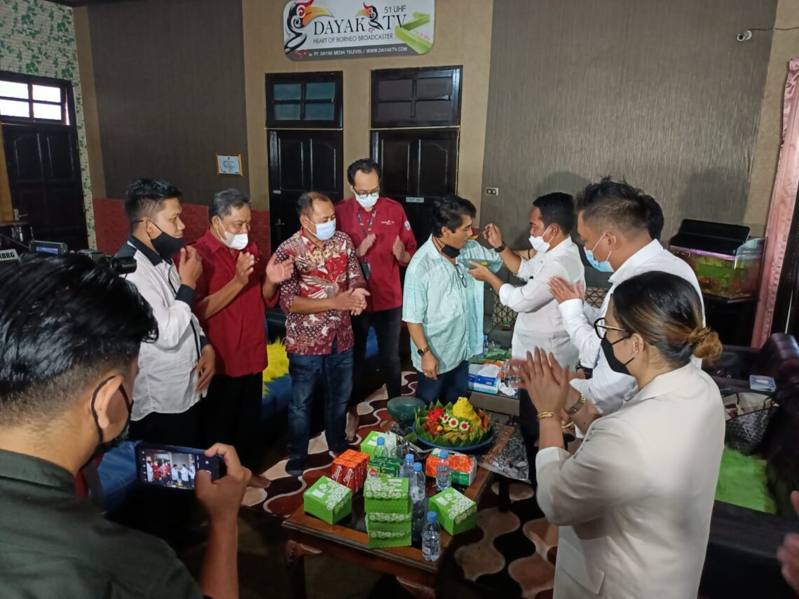 Usai berdialog dengan jajaran Dayak TV. Acara kemudian dilanjutkan dengan potong nasi tumpeng untuk memperingati peringatan Hari Jadi Dayak TV yang ke-4.