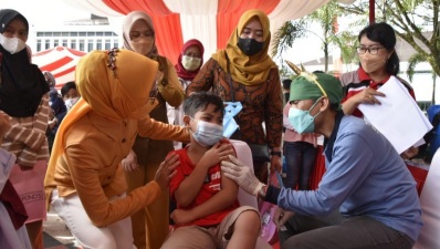 Vaksinasi anak usia 6-11 Tahun dihadiri langsung oleh Ketua Tim Penggerak Pemberdayaan dan Kesejahteraan Keluarga (TP-PKK) Prov. Kalteng Ivo Sugianto Sabran.