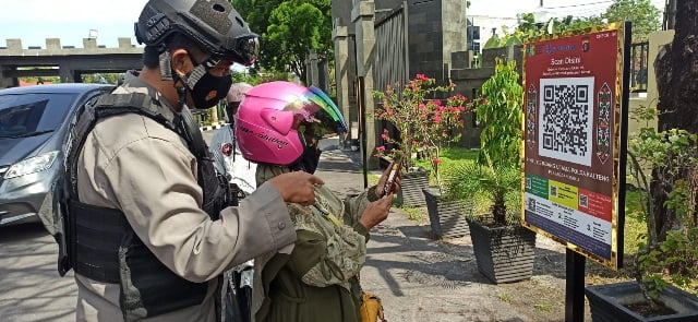 “Scan barcode aplikasi peduli lindungi bukan hanya untuk masyarakat, namun anggota juga diwajibkan tanpa tebang pilih,” katanya, Jumat (15/10/2021) pagi.