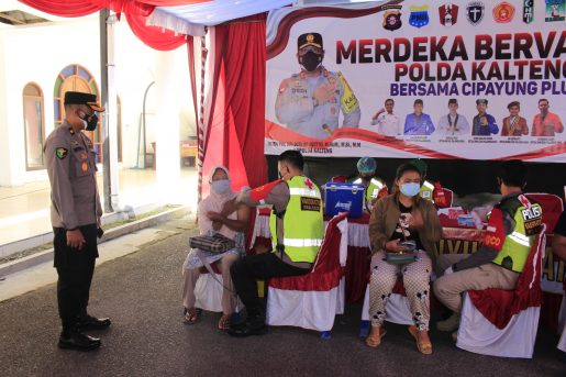 Kapolda Kalteng Irjen Pol. Dr. Dedi Prasetyo, M.Hum., M.Si., M.M., didampingi beberapa Pejabat Utama (PJU) Polda Kalteng turut hadir meninjau langsung kegiatan vaksinasi tersebut.