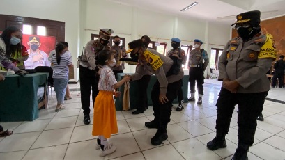 “Selain meninjau Kapolda juga memberikan bingkisan dan hadiah kue coklat kepada anak-anak yang telah selesai divaksin,” tutupnya.(tbn/fer)