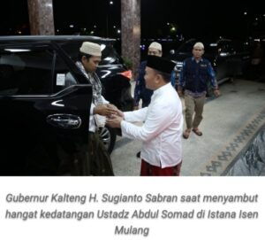 Dalam rangakaian safari dakwah ini, Ustadz Abdul Somad berkesempatan untuk bertemu Gubernur Kalteng H. Sugianto Sabran di kediaman H. Sugianto Sabran. Pertemuan ini juga sekaligus untuk silaturahim dengan dihadiri para ulama dan tokoh-tokoh umat di wilayah Kalteng. Kedatangan Ustadz Abdul Somad di sambut hangat oleh Gubernur Kalteng H. Sugianto Sabran di Istana Isen Mulang (IIM) Palangka Raya, Sabtu (16/4) malam.