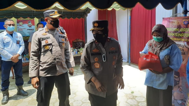 Selain memantau kegiatan vaksinasi, orang nomor dua di Polda Kalteng tersebut, juga membagikan bantuan sosial (Bansos) berupa Sembako kepada perwakilan pelajar dan masyarakat Kecamatan Rungan yang mengikuti vaksinasi.