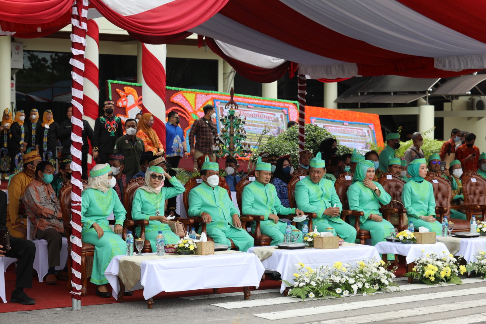 Upacara dihadiri oleh Wali Kota Palangka Raya Fairid Naparin, Wakil Kota Palangka Raya Hj. Umi Mastikah, Bupati se-Kalteng, Ketua, Wakil Ketua dan Anggota DPRD Kota Palangka Raya, Unsur Forkopimda Kota Palangka Raya, Sekretaris Daerah Kota Palangka Raya, Para Asisten, Staf Ahli Pemerintah Kota Palangka Raya, Kepala Perangkat Daerah Pemerintah Kota Palangka Raya, Pimpinan Perguruan Tinggi Negeri maupun Swasta Kalteng, Pimpinan Perbankan di Kalteng, Ketua Organisasi Agama, Organisasi Sosial dan Organisasi Kemasyarakatan, Tokoh Masyarakat, Tokoh Adat, Tokoh Agama dan Tokoh Pemuda. (red)