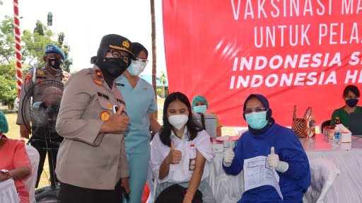 Wakapolda melalui Kabidhumas menyampaikan bahwa vaksinasi yang diinisiasi oleh Binda Kalteng bersama Polda Kalteng ini menargetkan sebanyak 1.700 vaksin yang akan diberikan kepada pelajar.