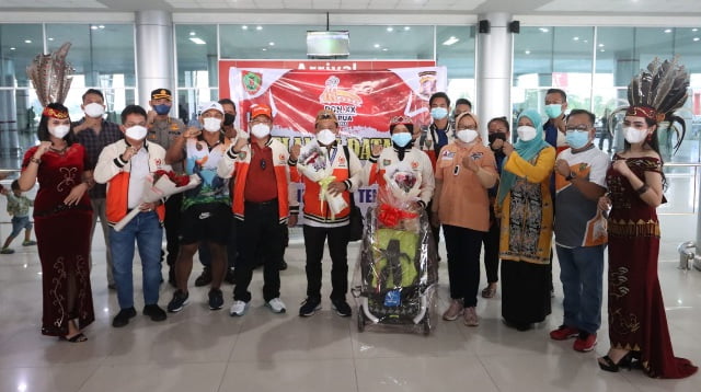 PALANGKA RAYA, JurnalBorneo.co.id – Sebagai bentuk apresiasi dan rasa bangga kepada atlet yang selesai berlaga di PON XX Papua, Kapolda Kalteng Irjen Pol Dr.Dedi Prasetyo, M.Hum., M.Si., M.M., diwakili Wakapolda Kalteng Brigjen Pol Ida Oetari Poernamasasi, S.A.P., M.A., menyambut kedatangan para pahlawan Olahraga Provinsi Kalteng kembali ke Bumi Tambun Bungai.