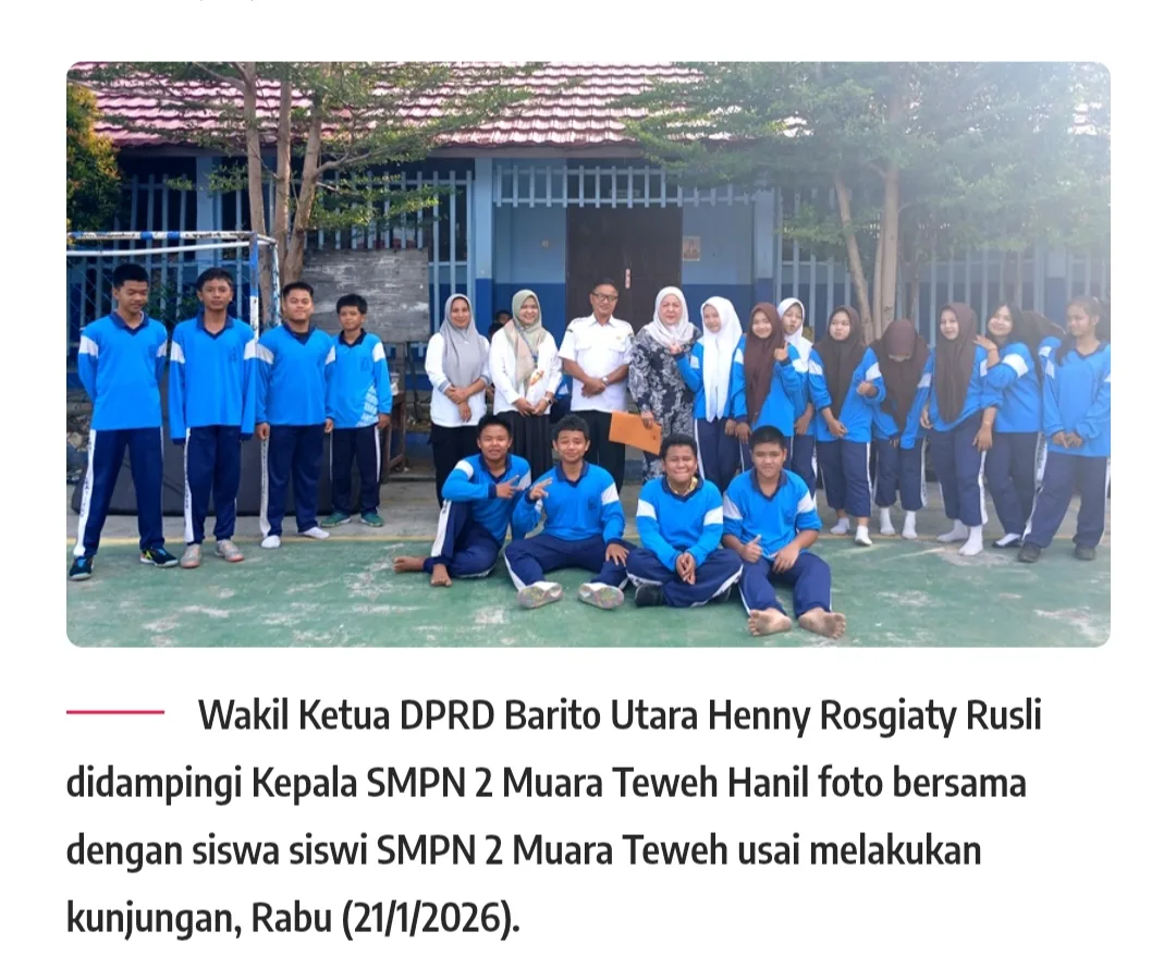 Wakil Ketua II DPRD Barito Utara, Henny Rosgiaty Rusli, melaksanakan kunjungan kerja ke SMPN 2 Muara Teweh, Rabu (21/1/2026).