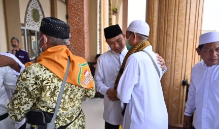 Suasana haru terlihat saat para jamaah haji datang dan di sambut para sanak keluarga yang menjemput. Terlihat mereka langsung memeluk melepas kerinduan.