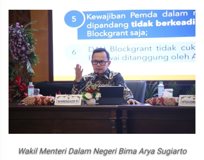 Wakil Menteri Dalam Negeri (Wamendagri) Bima Arya Sugiarto menekankan pentingnya pengelolaan dana Transfer ke Daerah (TKD) yang lebih adil, proporsional, dan efektif. Hal ini disampaikannya saat mendampingi Kunjungan Kerja Spesifik Komisi II Dewan Perwakilan Rakyat (DPR) Republik Indonesia (RI) di Ruang Rapat Hayam Wuruk, Kantor Gubernur Jawa Timur (Jatim), Kota Surabaya, Jumat (22/8/2025).
