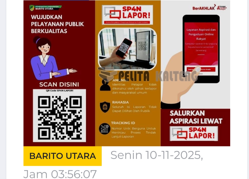 Pemerintah Kabupaten Barito Utara juga menyediakan akses mudah bagi masyarakat untuk menyampaikan laporan dengan memindai QR Code yang tersedia pada media publikasi resmi, atau langsung mengunjungi website SP4N LAPOR!.